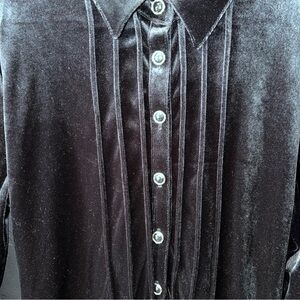 Coldwater Creek Black Velour Red Tartan Plaid Inside Collar Pull Over Dress Sz L House Coat Kaftan Zoom Meeting Comfort