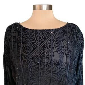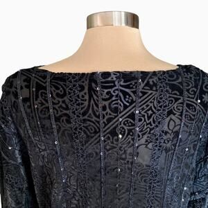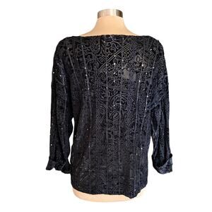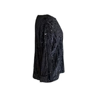 Coldwater Creek Black Velvet Burnout Sequined Blouse LG Whimsygoth Fairy Grunge