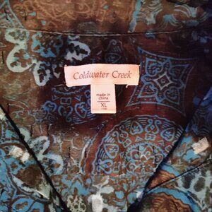 Coldwater Creek, Black and Blue Floral Button Up Blouse, XL, Like New!