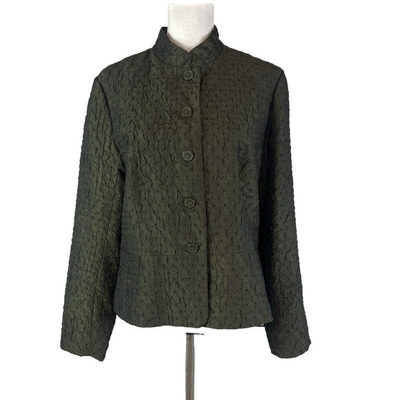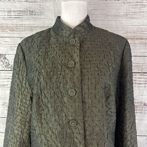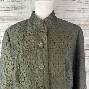 Coldwater Creek Blazer Jacket size Medium Olive Army Green Crinkle Shimmery