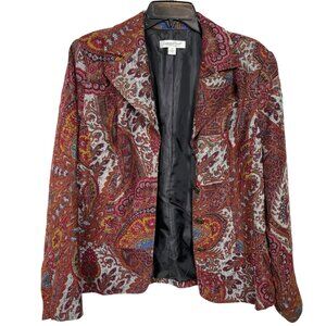 Coldwater Creek Blazer Womens Medium Red Paisley Colorful Boho Workwear Career