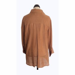 Coldwater Creek Blouse Size Medium Top Brown long Sleeve button down texture