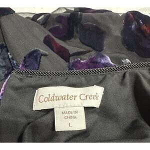Coldwater Creek Blouse Top Black Velvet Floral whimsigoth witchy dark Romantic L