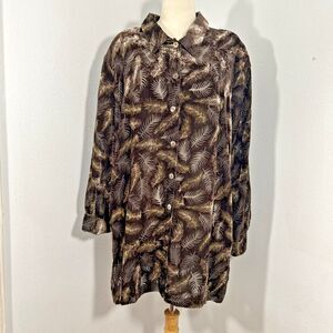 Coldwater Creek Blouse Womens 4X Brown Velvet Tropical Button Down
