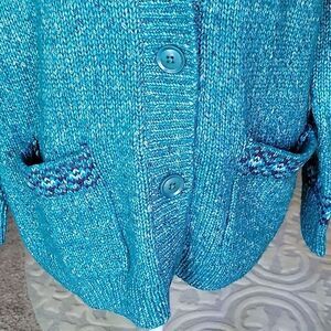 Coldwater Creek Blue Cardigan Sweater V-Neck Boucle Knit Size M