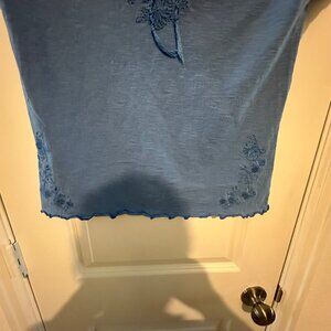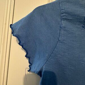 Coldwater Creek Blue Embroidered Cotton Short Sleeve Tie Neck Top S