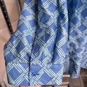 Coldwater Creek Blue Geometric Print Cotton Popover Top Size 2X Lightweight Boho
