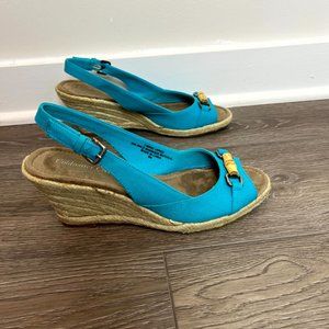 Coldwater Creek Blue Peep Toe, Sling Back Espadrille Size 9