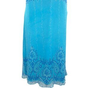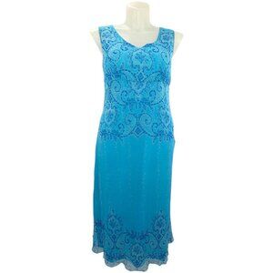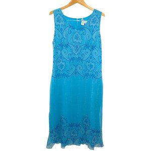 Coldwater Creek Blue Silk Midi Dress Damask Paisley Floral Vines (Misses 14)