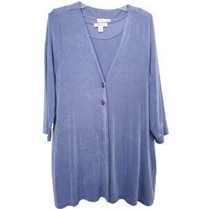 Coldwater Creek Blue Slinky Knit Long Button-Up Jacket with Shell Size 1X Travel
