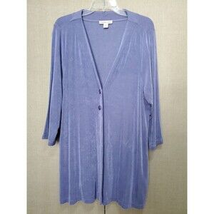 This is a Coldwater Creek Blue Slinky Long Button-Up Jacket with Shell Size 1X Travel.