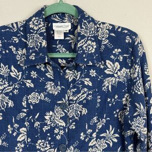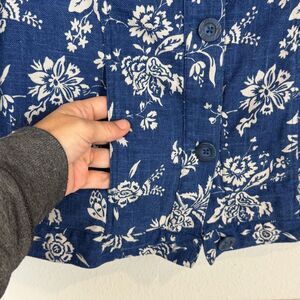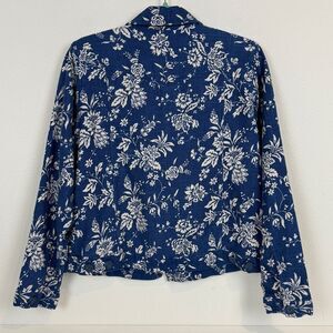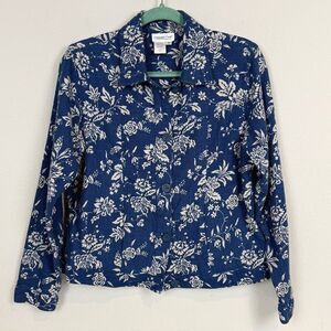 Coldwater Creek Blue White Floral Linen Blend Jacket M