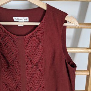 Pretty burnt orange boho top by Coldwater Creek. The top have an embroidered design across the chest.