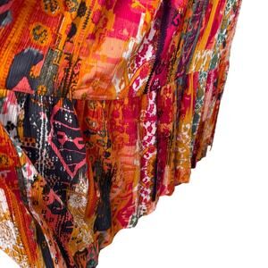 Coldwater Creek Boho Maxi Dress Ikat Patchwork Viscose M Pockets Button Closure