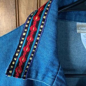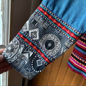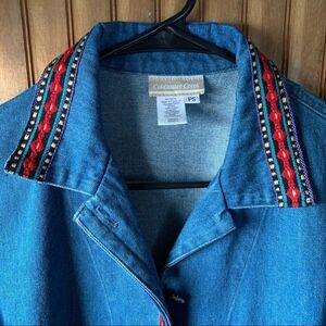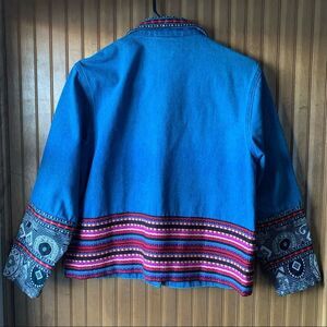 Coldwater Creek Boho Tapestry Braided Denim Jacket | Women Size Petite Small