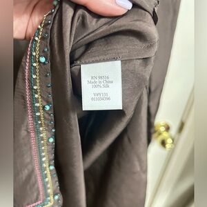 Coldwater Creek Brown 100% Silk Embellished Beaded Trim Tunic Top Size MP