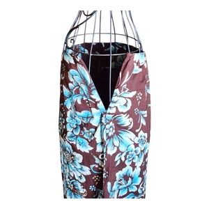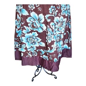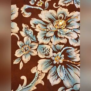 This Coldwater Creek Vintage Floral Skirt is a beautifully crafted, timeless piece that blends classic charm with everyday comfort. Made from 100% cotton, both the shell and lining ensure breathability and a soft feel. The rich brown base color is adorned with an elegant blue floral print and sequins, creating a striking contrast that enhances its vintage appeal.