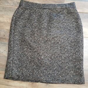 Coldwater Creek Brown Blue Silver Metallic Knee Length Pencil Skirt Plus Sz 14