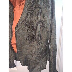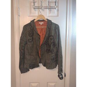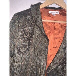 Coldwater Creek Brown Floral Wool Acrylic Blend Boho Casual Blazer Jacket Sz 10