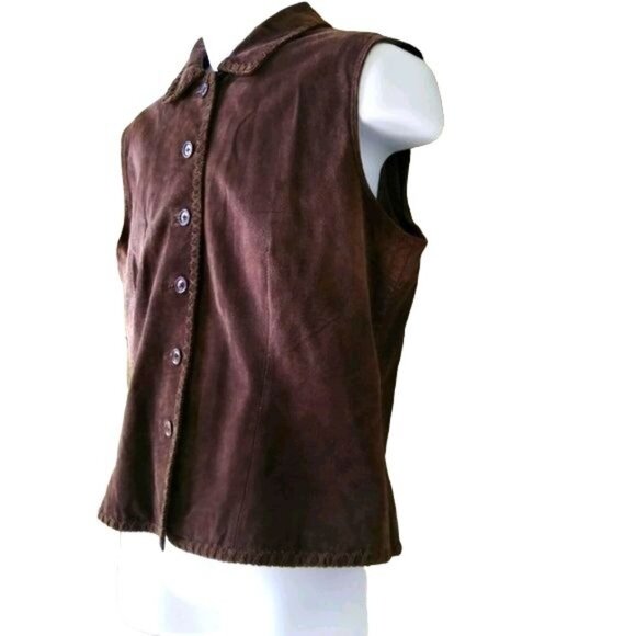 Coldwater Creek Brown Leather Button-Up Vest Size XL
