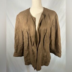 Coldwater Creek Brown Tan Open Front Jacket Blazer LINEN Rayon Women Plus 18