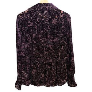 Coldwater Creek Burnout Velvet Blouse Purple S Sheer Whimsygoth Witchy Vampire
