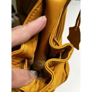 The Coldwater Creek Buttery Soft Leather Harvest Gold Yellow Hobo Shoulder Bag Purse is a stylish and versatile accessory for women. Made from high-quality leather, this medium to large-sized bag features a solid yellow exterior with a beige cotton lining. The zip closure and yellow leather handle/strap add a touch of sophistication, making it suitable for travel, casual outings, and business settings. With its spacious interior and practical design, this hobo bag is both fashionable and functional for everyday use.