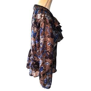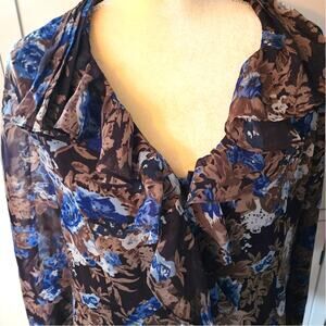Coldwater Creek Button Up Sheer Ruffled V-Neck Multicolored Size Large