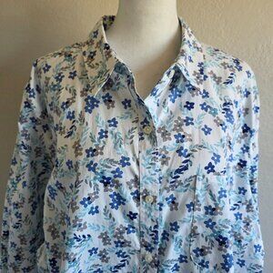 Coldwater Creek Button Up Shirt Watercolor Artsy Floral Cotton Plus Size 2X