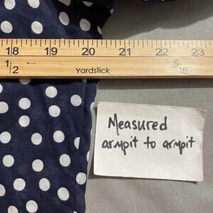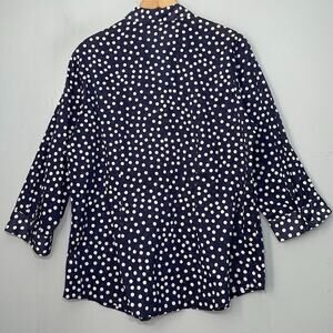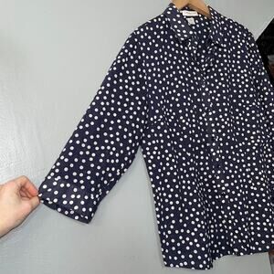 Coldwater Creek 3/4 sleeve navy blue and white polka dot print lightweight slightly sheer cotton button front top in Great pre-owned condition showing minimal wash and wear!