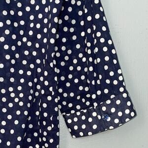 Coldwater Creek Button Up Shirt Womens Size Large No Iron Navy Polka Dot Preppy