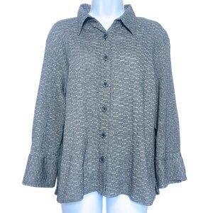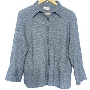 Coldwater Creek Button Up Top Womens Size PXL Blue Knit Textured Casual Workwear