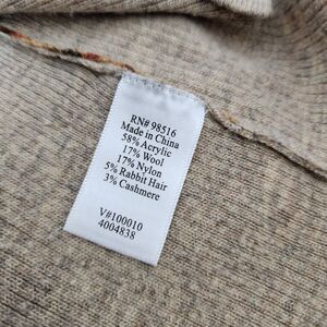 58% Acrylic 17% Wool 17% Nylon 5% Rabbit Hair 3% Cashmere