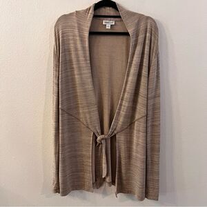Coldwater Creek Cardigan Sweater Travel Knit Size Large Tan Tie Front