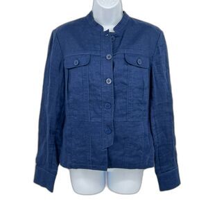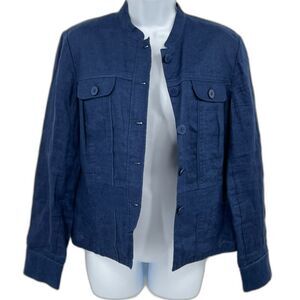 Coldwater Creek Casual Jacket Womens 10 Blue 100% Linen Button Up Breathable