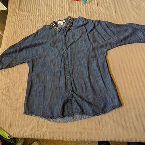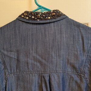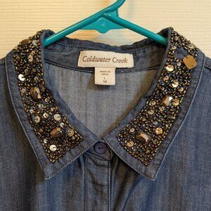 Coldwater Creek Chambray Shirt with Jeweled Collar Size 14