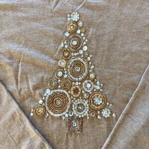 Coldwater Creek Christmas Tee With Rhinestones & Beaded Christmas Tree Design