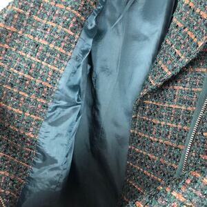 Coldwater Creek Classic Green Blue Metallic Bronze Tweed Wool Blend 3/4 Sleeve Zip Moto Jacket Blazer