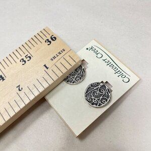 Coldwater Creek Clip On Earrings Abstract Filigree Swirl Round Silver-Tone
