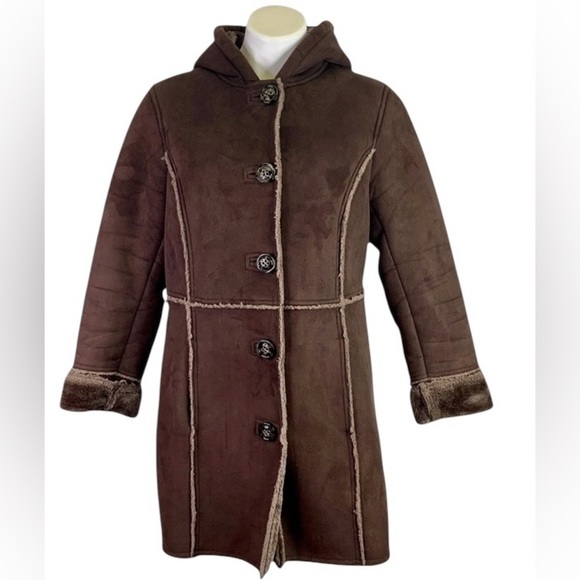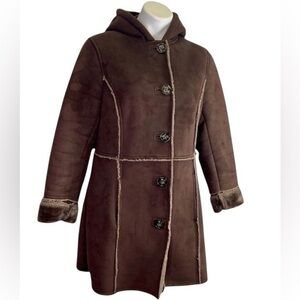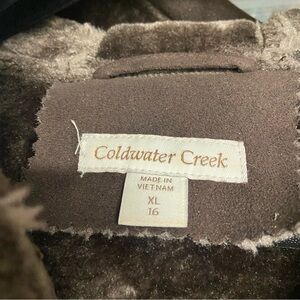 Coldwater Creek Coat Brown Faux Shearling Suede Fur Size XL (16) Winter Jacket