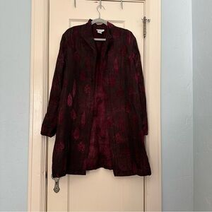 Coldwater Creek Coat Longline Leaf Burgundy L