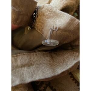Good used condition, lightly worn and washed. The button at closure is loose (has a clasp and zipper). See all photos for detail.