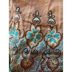 Coldwater Creek Colorful Boho Linen Blend Floral Sequin Bead Midi Skirt- Size M