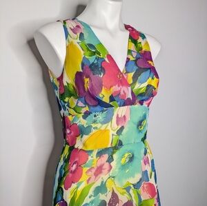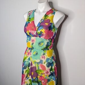 Coldwater Creek Colorful Floral Sleeveless V Neck Midi Dress 6. Great condition.