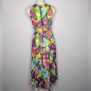Coldwater Creek Colorful Floral Sleeveless V Neck Midi Dress 6