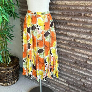 Coldwater Creek Colorful Orange Floral Pleated Flare Skirt Size Large Petite