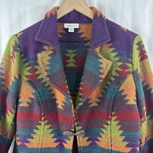 Coldwater Creek Colorful Southwestern Boho Metal Classp Artsy Blazer Womens S