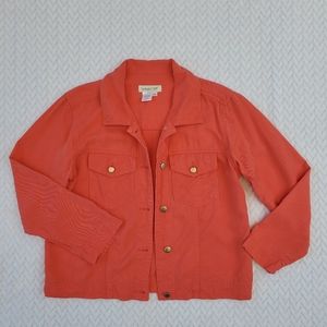 Coldwater Creek Coral Pink Tencel Button Down Jean Jacket Size XS