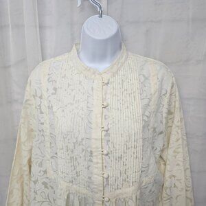 Coldwater Creek Cream Burnout Pintuck Peasant Blouse Sheer Boho XL