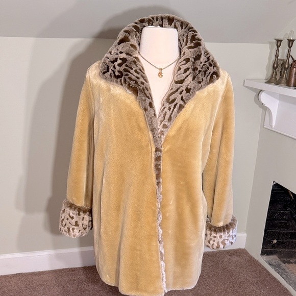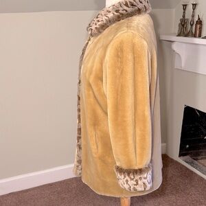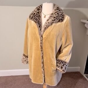Coldwater Creek Cream Teddy Jacket with Leopard Accents
